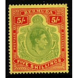 BERMUDA SG118g 1950 5/= GREEN & SCARLET/YELLOW p13 CHALKY PAPER MTD MINT