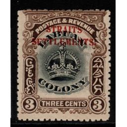 MALAYA STRAITS SETTLEMENTS SG143 1907 3c BLACK/SEPIA MTD MINT