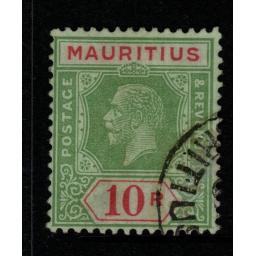 MAURITIUS SG204d 1922 10r GREEN & RED/EMERALD(EMERALD BACK) DIE II FINE USED